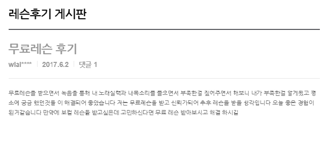 무료레슨 후기 . 출처 - 보이스테크닉 모두홈페이지 > 레슨후기