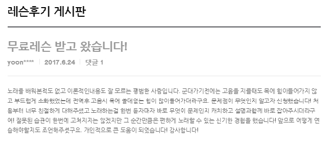 무료레슨 받고 왔습니다! 출처 - 보이스테크닉 모두홈페이지 > 레슨후기