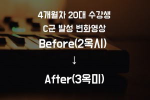 이전글 다음글 목록 본문 4개월차 20대 수강생 C군 발성 비포/애프터 Before(2옥시) - After(3옥미) 4개월차 20대 수강생 C군 발성 비포/애프터 Before(2옥시) - After(3옥미)