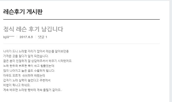 정식 레슨 후기 남깁니다. 출처 - 보이스테크닉 모두홈페이지 > 레슨후기