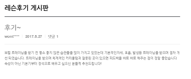 후기~ 출처 - 보이스테크닉 모두홈페이지 > 레슨후기