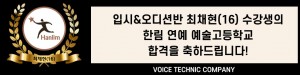[ 예술 고등학교 입시 합격 ] 입시&오디션반 최채현(16) 수강생의 한림연예예술고등학교 합격을 축하드립니다! > 실시간 합격생