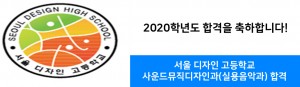 이전글 다음글 목록 본문 [2020학년도 예고 입시 합격] 서울 디자인 고등학교 사운드뮤직디자인과(실용음악과) 합격을 축하합니다! [2020학년도 예고 입시 합격] 서울 디자인 고등학교 사운드뮤직디자인과(실용음악과) 합격을 축하합니다!