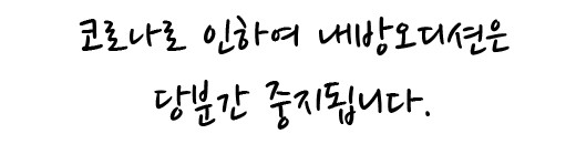 코로나로 인하여 3월,4월,5월 진행 예정이었던 스타쉽,MLD 엔터테인먼트 오디션은 연기됩니다.