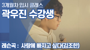 이전글 다음글 목록 본문 3개월만에 실용음악과 합격! 입시클래스 수강생 곽우진 [ 김조한 - 사랑에 빠지고 싶다 Cover] 3개월만에 실용음악과 합격! 입시클래스 수강생 곽우진 [ 김조한 - 사랑에 빠지고 싶다 Cover] 수시 1차 직전에 들어온 입시반 우진이!남은 입시 기간도 화이팅입니다!-*현재 곽우진 학생은 3개월 준비로 50대1이 넘는 경쟁률을 뚫고실용음악과에 진학한 학생이 되었답니다!